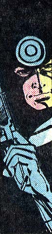 Who Was That Bullseye I Saw You With Last Night? Confused over price-guide claims that Bullseye showed up in Nick Fury: Agent of S.H.I.E.L.D. years before he started annoying DareDevil? Do the Powers That Be at Marvel consider the two bad guys to be one really bad guy? Here's writer Kurt Busiek on the subject (posted in rec.arts.comics.marvel.universe on 5/13/98): "They're not -- that's just a price guide trick to sell more NICK FURY back issues. If I recall correctly, Bulls-Eye, from NF 15, not only dies in that issue, but his power of uncanny aim is a part of his gun, not himself. Bullseye, from DD 131, has never been connected to that earlier Bulls-Eye, and his ability is his own, not a technological advantage. If it makes a difference, in his original run of Marvel Indexes, George Olshevsky identifies the two characters as different guys -- and he's got less of a conflict of interest than the retailers and price-guide folks who benefit from prices going up on NF 15."