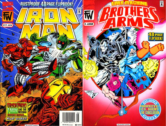 Tony Stark dons the Crimson Dynamo armor to take on the Titanium Man (with Valentin Shatalov controlling most of the Dynamo, however)! Cold War political arguments dominate the discourse, with T-Man obstinate as ever....leading to the Dynamo using a new "fusioncaster" to kill Boris Bullski! Unrelated story on the opposite side of the ish (a "flip-book").